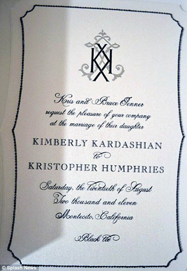Kim Kardashian Wedding Invitation everyone is interested to see it and want to know is the Kim Kardashian Wedding Invitation Card would be beautiful and sexy like her or it would be only known as the Kim Kardashian Wedding Invitation 2011as other invitation cards available in the market. The very special reason to see the Kim Kardashian and Kris Wedding Invitation Card because their engagement ring was not only unique as it was Kim Kardashian engagement ring but it was also unique in its design and price too. So my idea is people would be expecting very high cost Invitation card for this upcoming wedding.